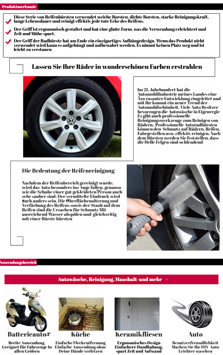 Autoreifenbürste, Felgenbürste, Autowaschwerkzeug, Reinigung der Felgenbürste, starker Dekontaminati