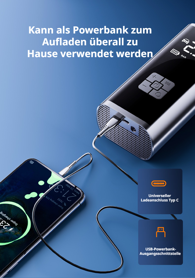 Aufblasbare Pumpe für Auto Tragbarer Inflator Kabellose Reifenfüllpumpe Multifunktionale aufblasbare