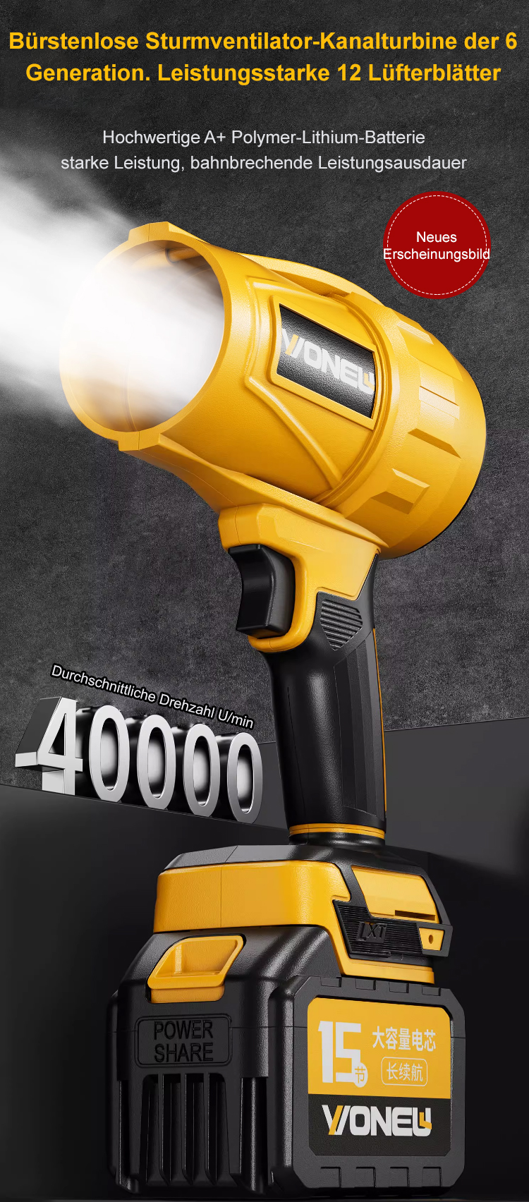 Industrielle bürstenlose Lithium-Akku-Gebläse.