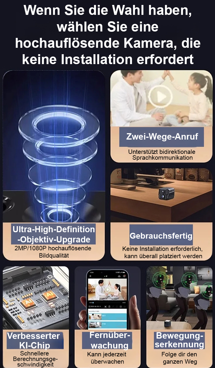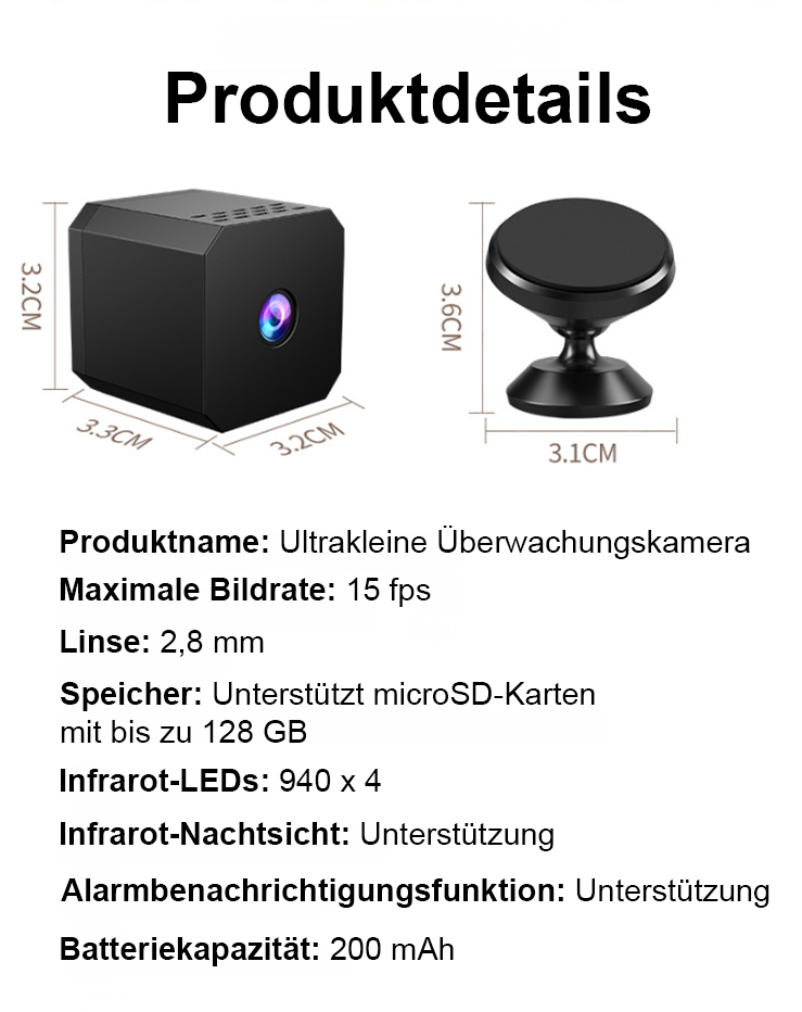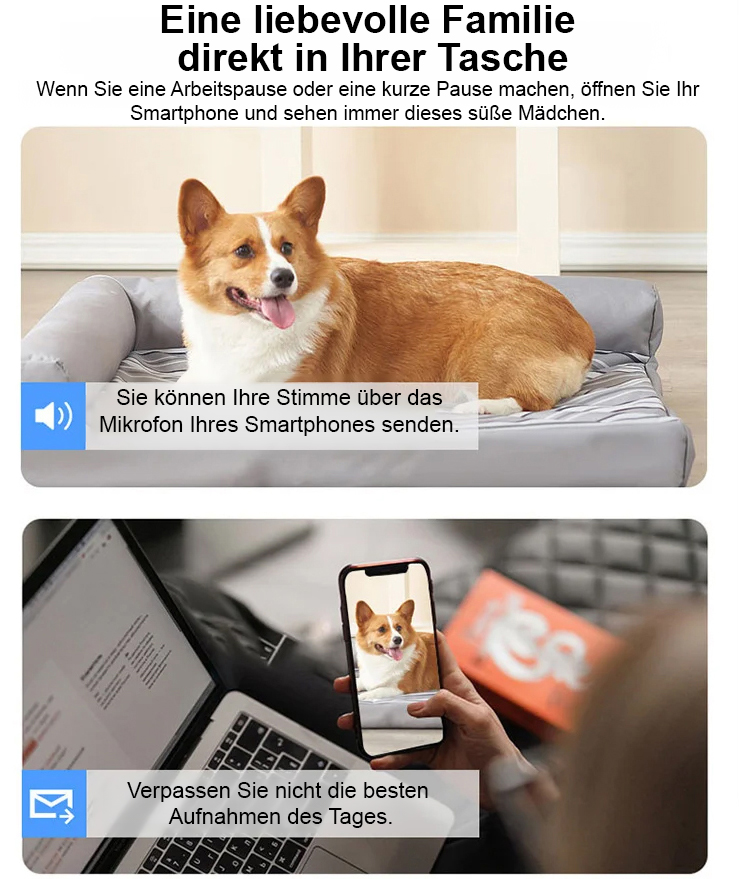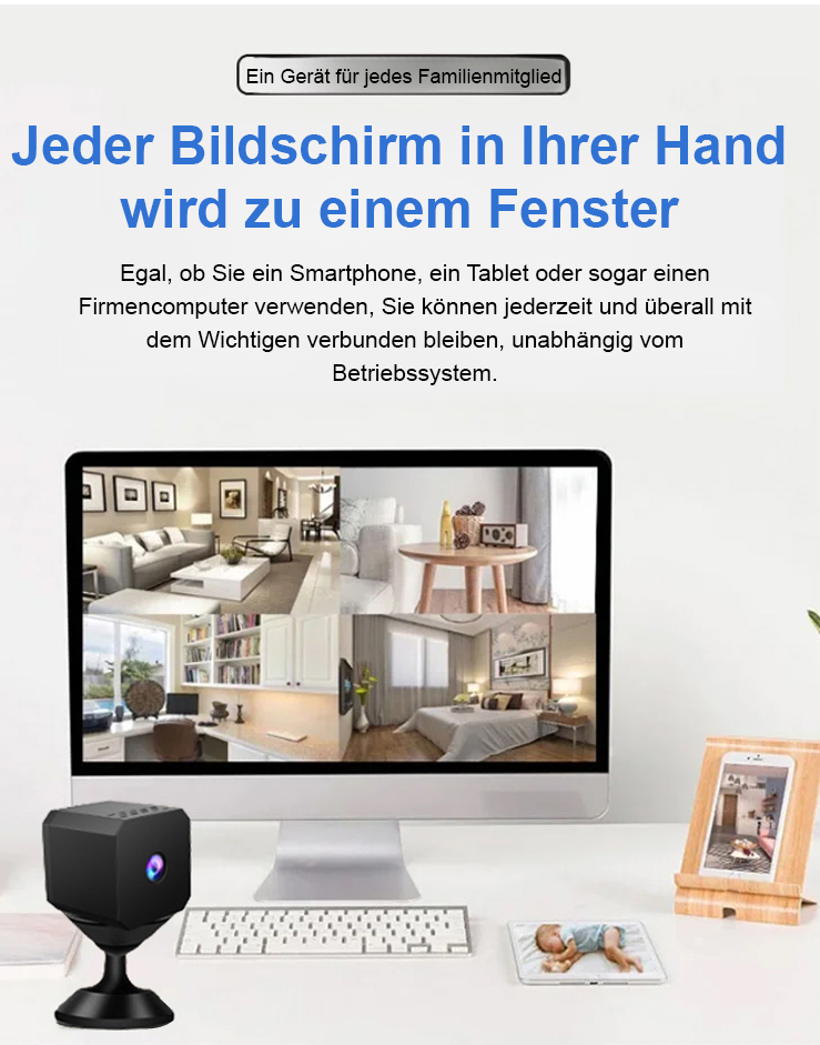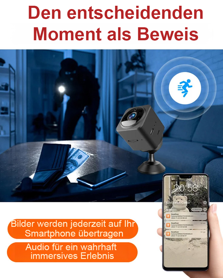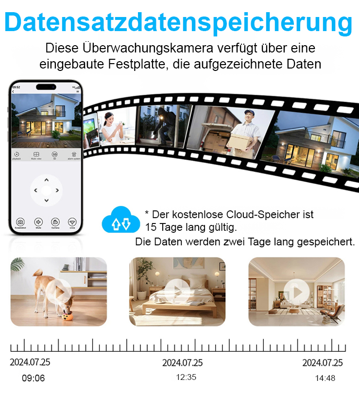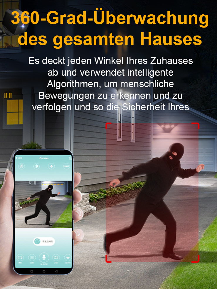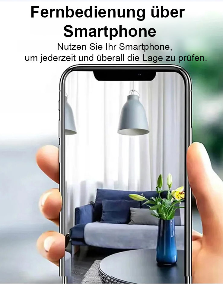 Keine Stromversorgung oder Verkabelung erforderlich, direkt mit Ihrem Handy verbinden für Fernsteuerung, sodass Sie auch von unterwegs den Zustand Ihres Zuhauses klar sehen können. Ausgestattet mit einer Hochleistungsbatterie, kann es 180 Tage lang kontinuierlich überwachen!