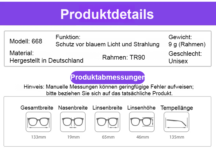 Keine Sehtests erforderlich, automatische Fokusanpassung für alle Dioptrien bei Kurz- und Weitsichtigkeit, lebenslang ohne Austausch! Den ganzen Tag tragbar, ohne Druckgefühl auf Nase und Ohren! Selbst im Winter beschlagen die Gläser nicht!