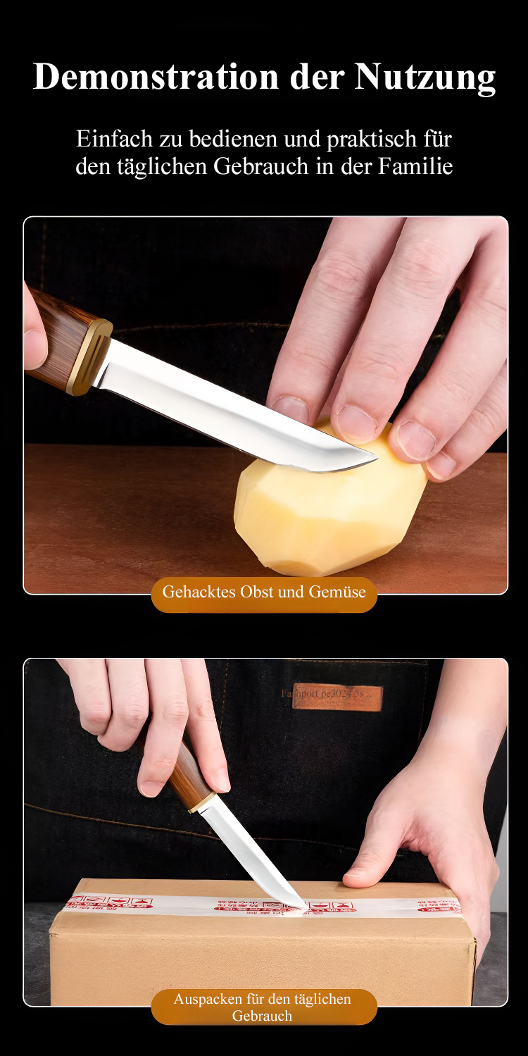 Es kann Fleisch und Gemüse so leicht schneiden wie Tofu. Zehn Jahre lang kein Nachschärfen erforderlich, bleibt immer scharf wie neu. Selbst wenn eine Frau eine Stunde lang mit einer Hand ununterbrochen schneidet, wird das Handgelenk nicht müde!