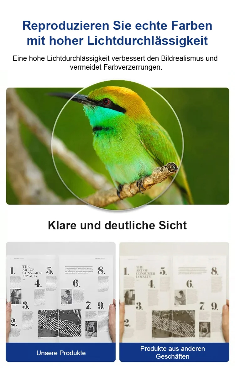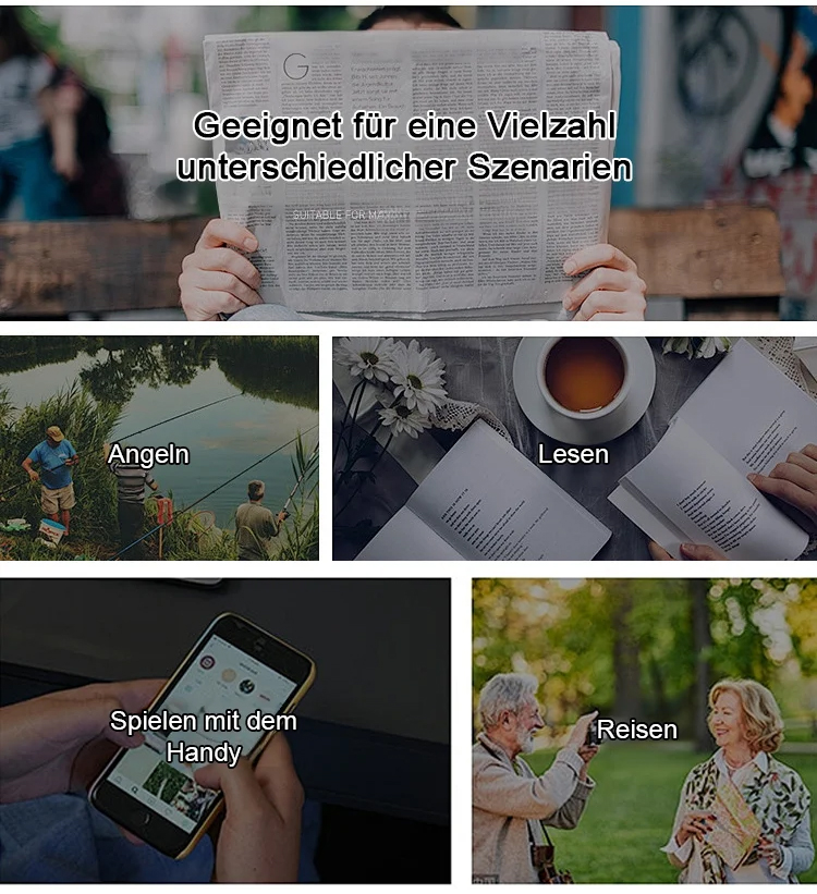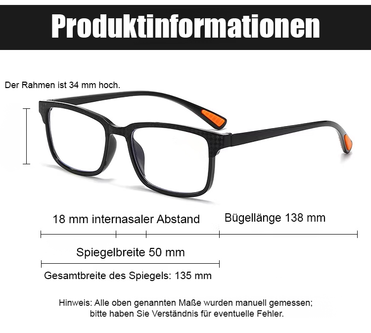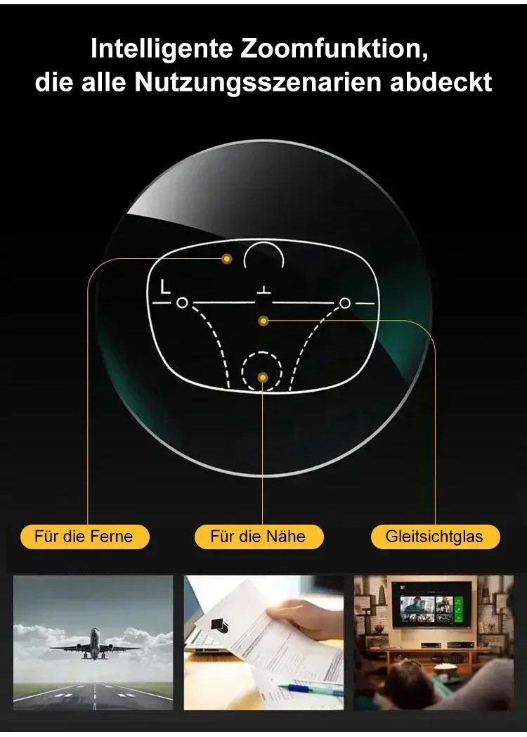 Keine Sehtests erforderlich, automatische Fokusanpassung für alle Dioptrien bei Kurz- und Weitsichtigkeit, lebenslang ohne Austausch! Den ganzen Tag tragbar, ohne Druckgefühl auf Nase und Ohren! Selbst im Winter beschlagen die Gläser nicht!